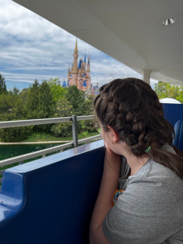 On Monday morning, we messaged one another and agreed to meet up in their hotel lobby so we could travel to the Magic Kingdom together. The look on Élise’s face was priceless when she saw her godmother. You could see her processing things and the smile spread on her face. “Marraine” was here! Hugs all around, and we made our way to the park.