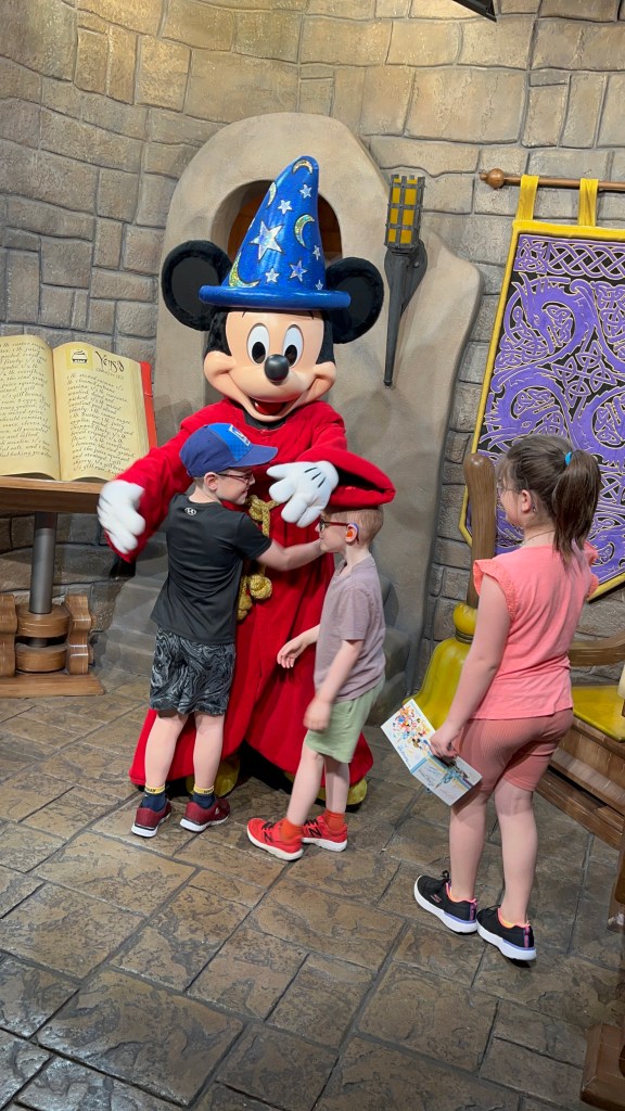 As a result of the various treatments over the past three years, Liam has suffered some physical effects that have left him with some hearing loss and vision issues. He was on a feeding tube for a couple of years, and has only begun to fully reintroduce solid foods over the past few months. He can tire quickly, so the family ensured that they had strollers for the kids. Ironically, because of these issues, our trip was actually made a little bit easier. Disney has a Disability Assistance Service (DAS), where a family can apply, a Cast Member has a video call with the family a month prior to the visit and, if approved, you get access to the DAS service. This works, for those who have been to WDW prior to COVID, like the old FastPass system. Rather than needing to wait in the queue for some rides and activities, you would be given a time-frame and then you return to the ride entrance at that point to wait in a (much) shorter queue to get on the ride. They were able to book two of these at a time, and once used, book another ride later in the day. Thanks to these DAS passes, we were able to do so much more than Isabelle and I had anticipated.