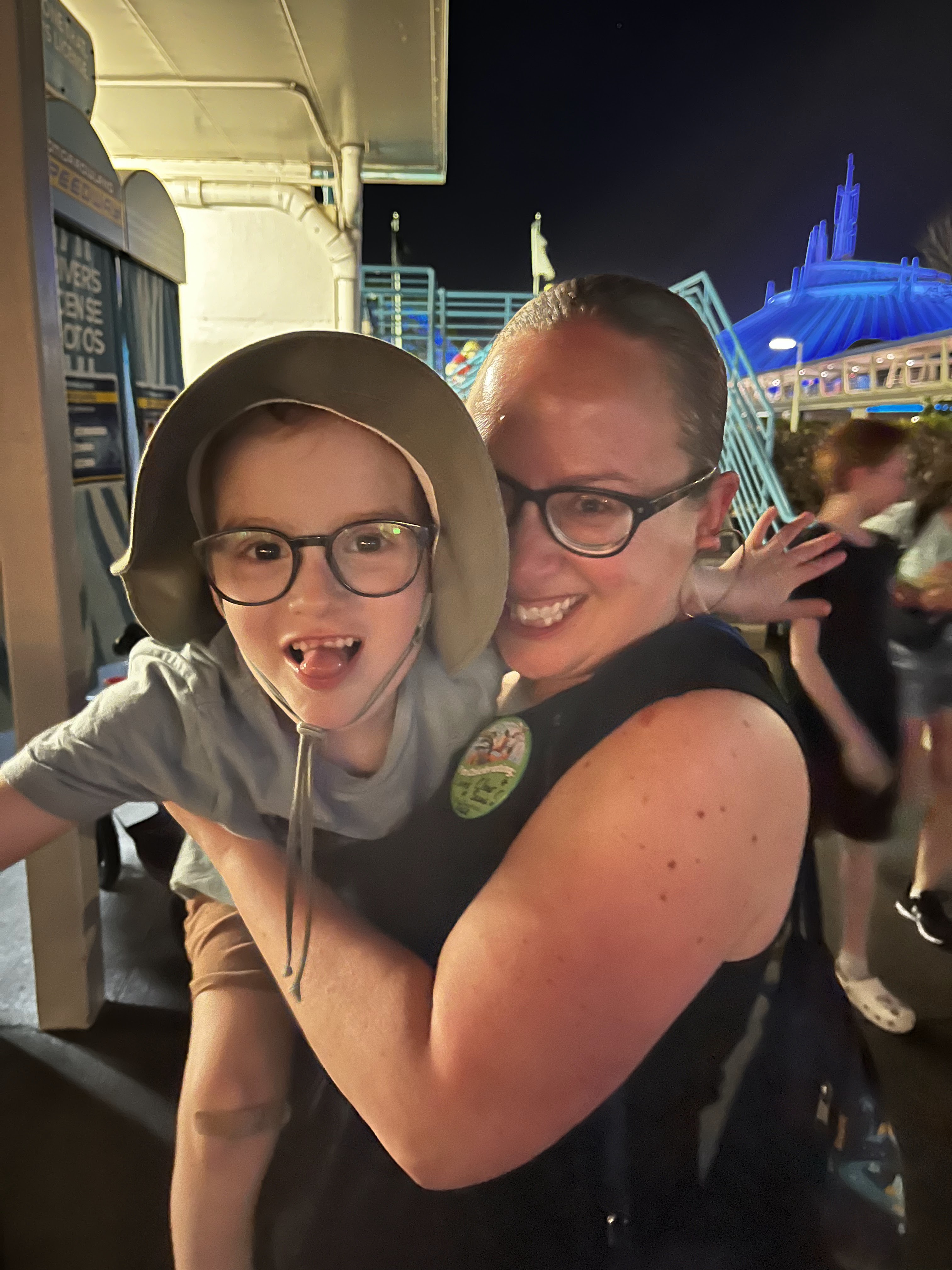 As the trip progressed, the kids grew more emboldened. Charles in particular. He quickly was bored of the “kiddie rides” as he called them and wanted to do more! On their last day, most of the family had that opportunity. Just a couple of weeks before our trip, Disney officially opened a new rollercoaster – TRON Lightcycle / Run. This new high-speed coaster was the last ride of the night for all of the Mallet family, except for Liam. Sadly, he did not make the height requirements. This did allow Isabelle and I to have a bit of solo time with Liam. We took him with us while the others headed off to ride TRON. (Based on the photos of the other kids afterwards, I do not think it disappointed them!) While we were wating for them, Liam got to go ride his two favourite rides one last time on their final night – the PeopleMover and the Tomorrowland Speedway. Everyone came out happy in the end.